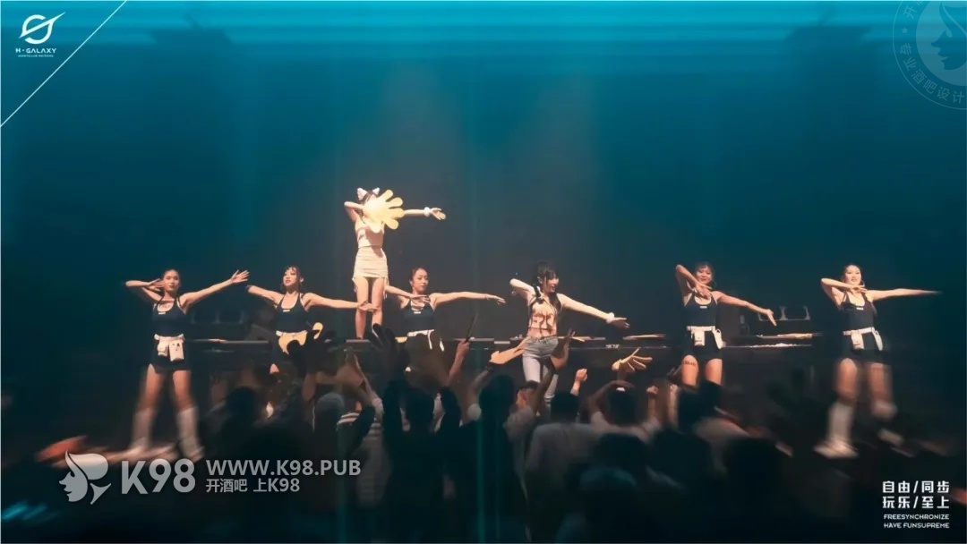山东高密居住人口近90万。新近开业的H.GALAXY银河酒吧采用派对式夜店概念,场地结构呈长方形,中心区域无柱,空间高10米,采用高科技声光电与超前舞台设计。
